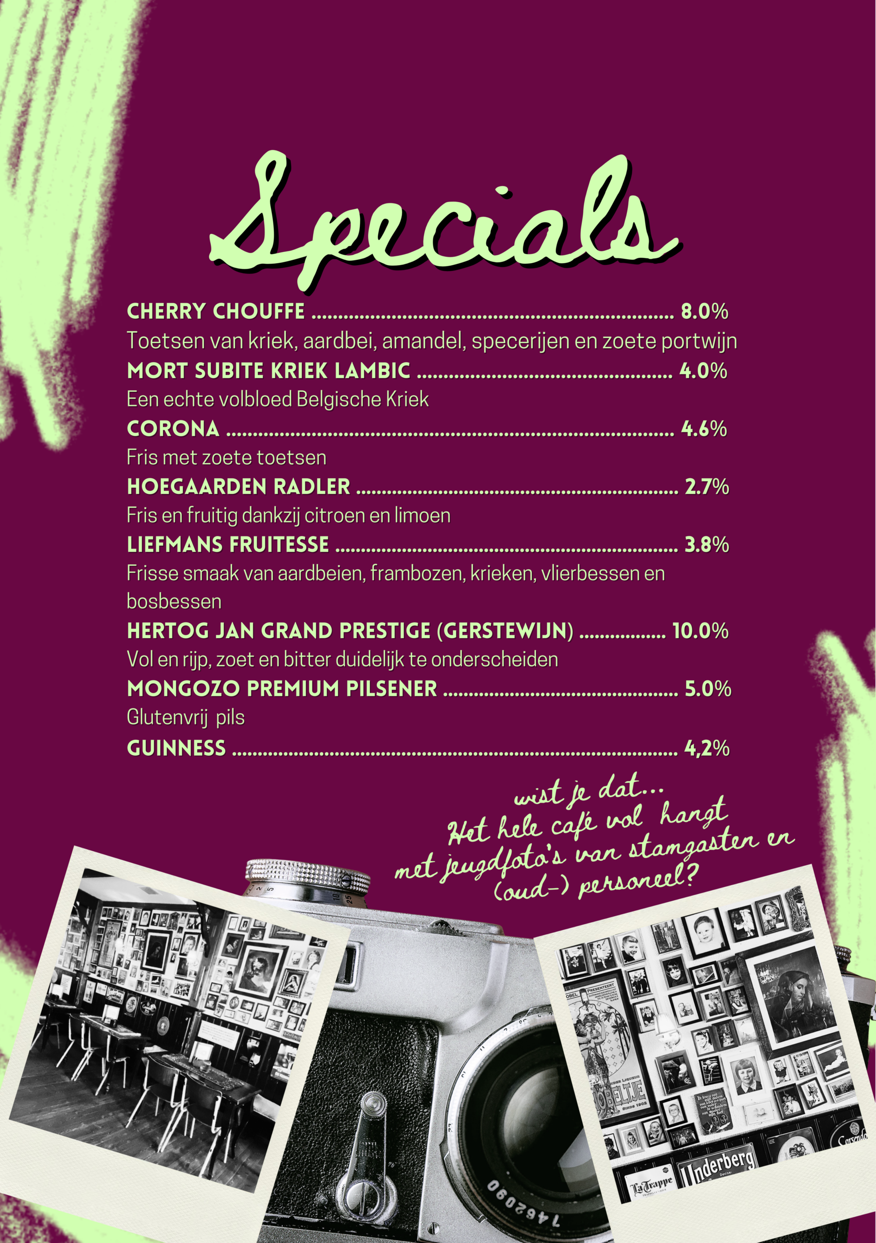 Geniet van Hertog Jan en vele speciaal bieren in ons bruin café in Zwolle. Wij laten u graag ervaren waarom café De Hete Brij in de café top 100 staat!